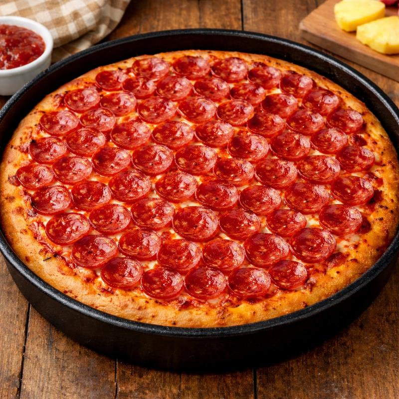 Pepperoni, cheese, MORE pepperoni, and MORE cheese.