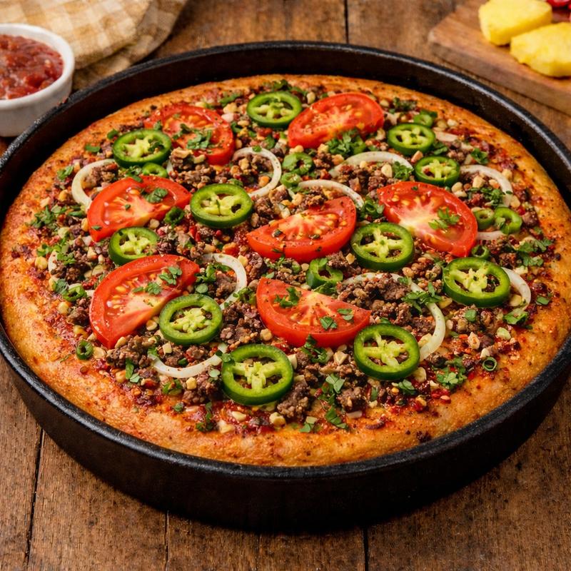 Crushed red pepper, garlic, cilantro, tomatoes, beef, onions, jalapeno peppers, or green peppers.