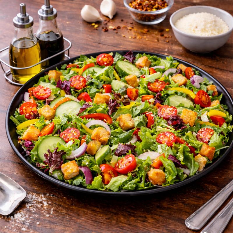 House Creamy Italian, Ranch, 1000 Island, Bleu Cheese, French, or Fat-Free Italian.