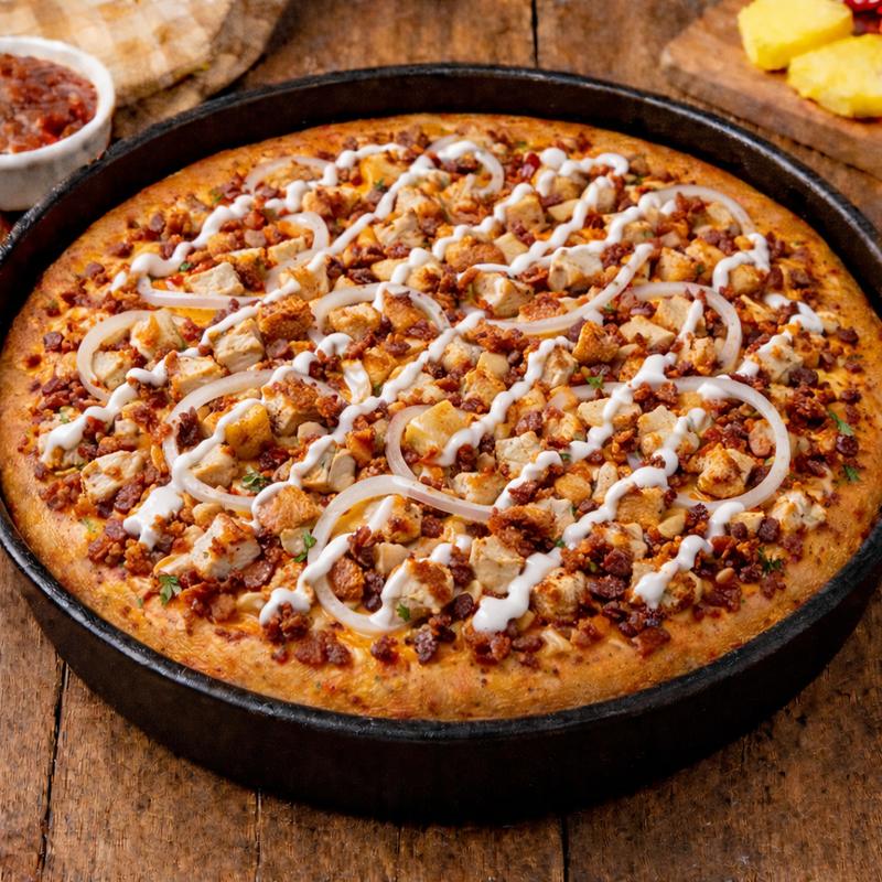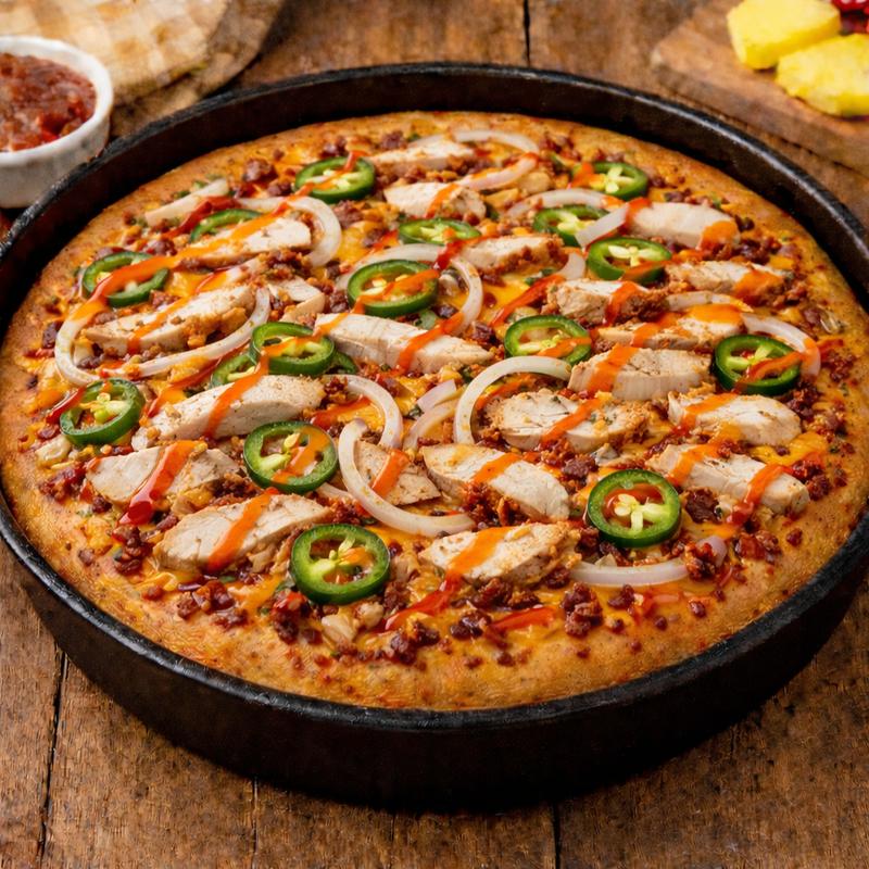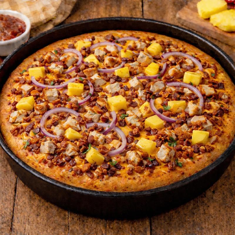 Thai Chili Sauce Base, Chicken, Red Onion, Pineapple, Bacon, Cheddar Cheese